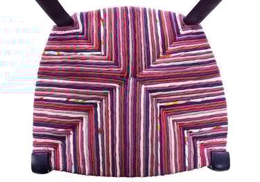 Je travaille également le paillage de sièges en tissus, une méthode colorée et contemporaine qui permet de personnaliser chaque assise. J’aime jouer avec les textures et les teintes pour créer des sièges uniques, à la fois confortables et expressifs.